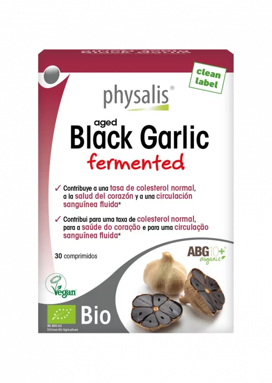 El Black Garlic de Physalis es un suplemento natural basado en el ajo negro, un ingrediente que ha ganado popularidad en la medicina natural y en la gastronomía por sus propiedades antioxidantes y beneficios para la salud cardiovascular y el sistema inmunológico.